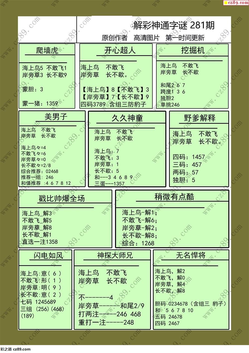 > 25年281期牛彩解福彩3d彩神通字画报