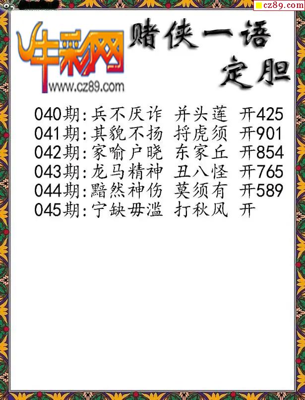 > 福彩3D2026045期彩赌侠一句定三码字图谜