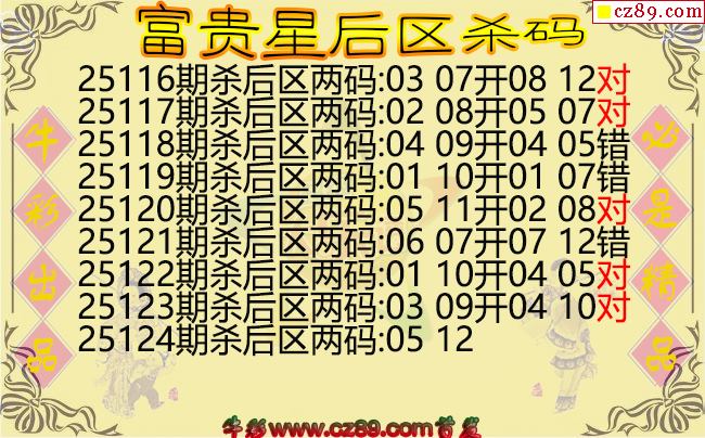 大乐透124期富贵星后区杀码图谜
